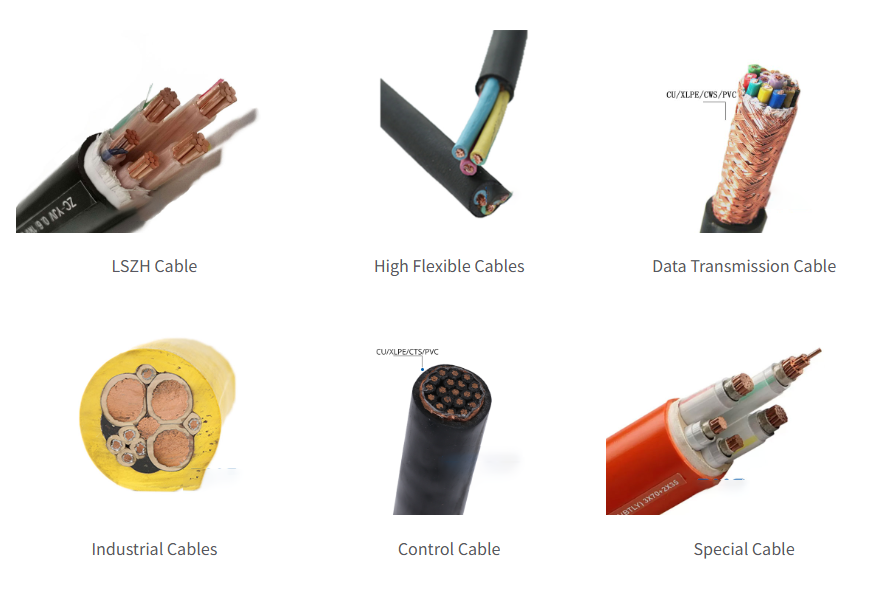 كابلات هالوجين منخفضة الدخان ، والكابلات والأسلاك المرنة ، وكابلات نقل البيانات ، والكابلات الصناعية ، وكابلات التحكم ، والكابلات الخاصة.