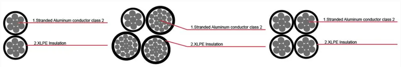 تحتوي الكابلات المجمعة الجوية المصممة لخطوط التوزيع العلوية على جميع الموصلات المصنوعة من الألومنيوم 1350 ومعزول مع XLPE. يتم وضع المرحلة والنوى المحايدة في حزمة مع وضع اليد اليسرى. يمكن استخدامه للتثبيت الثابت كخطوط توليد الطاقة النفقات النفقات حتى 1000 فولت.