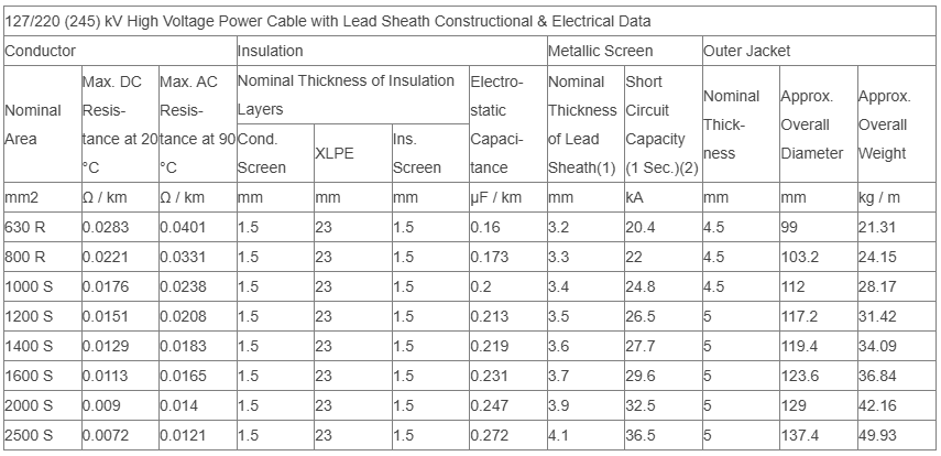 127/220kV بناء كابل الجهد العالي