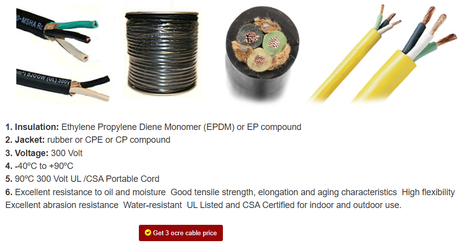 16mm 25mm2 50mm2 3 Core SJ/Sjoow/SJO/SOOW كابل مطاطية زيت المقاومة