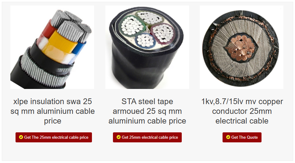 ولكن من مادة الموصل. يحتوي كابل الطاقة 25 مم على كابل نحاسي 25 مم 2 وكابل الألومنيوم 25 مم مربع. لذلك ، عند شراء الكابل. يجب أن تفهم بوضوح بنية الكابل. عادةً ما يكون سعر كابل XLPE 25 مم أعلى من كابل عزل PVC. بسبب عزل XLPE يمكن أن يقاوم +90 درجة حرارة عالية.