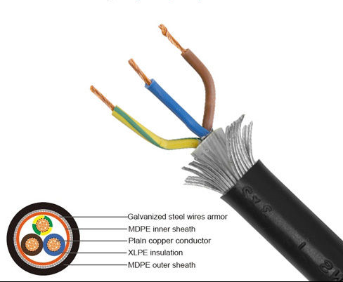 | الموصلات: النحاس الصلب البسيط العزل: XLPE (البولي إيثيلين مرتبط) تحديد الهوية الأساسية: 3 جوهر (بني ، أزرق وأخضر وأصفر) الفراش: PVC (بولي فينيل كلوريد) درع/حماية: SWA (درع سلك واحد) غمد/سترة: PVC (البولي فينيل كلوريد) اللون: أسود الجهد: 600/1000V |