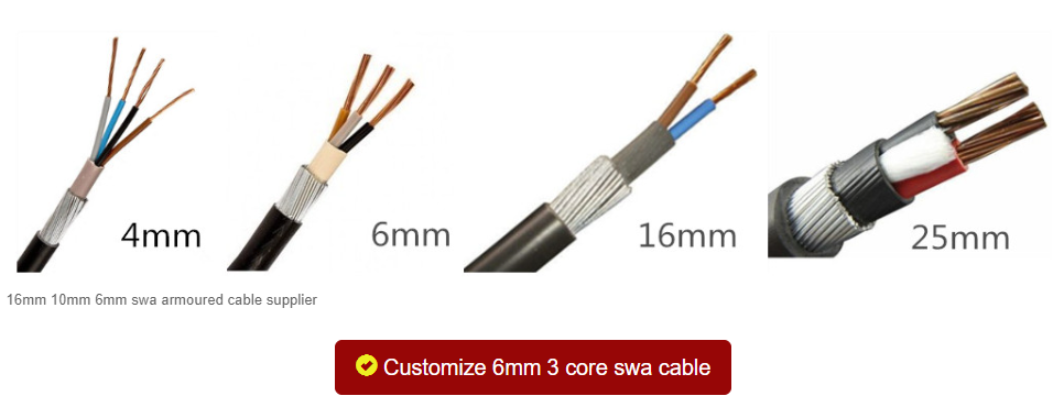 على وجه الخصوص ، يعد كابل Power SWA الأساسي 3 ميزة عالية جدًا في جميع أحجام الكابلات المدرعة SWA البالغة 16 مم 3. بسبب القوة العالية القوية الطبقة المدرعة. يستخدم الكابل المدرع الأساسي 6 مم 3 بشكل أساسي في العديد من البيئات المحددة. أصبح أكثر وأكثر شيوعًا لكثير من العملاء لبرنامجهم الكبير.