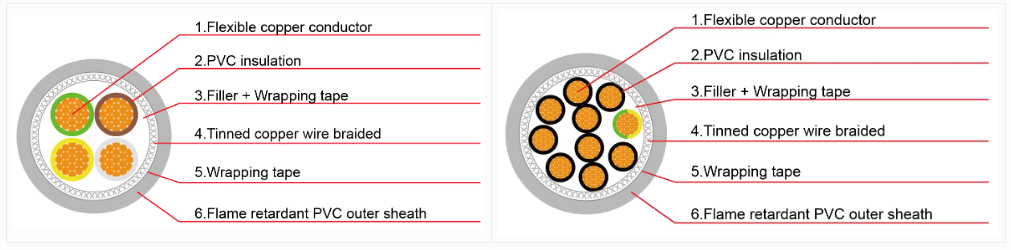 3. بنية قابلة للتطبيق -licy PVC/TCWB/PVC كابل التحكم