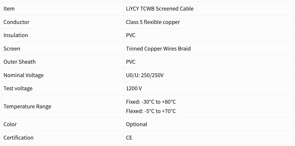 5. مواصفات قابلة للتشكيل (كابل liycy):