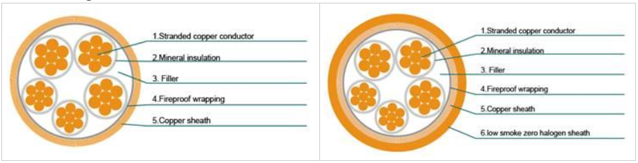 الجهد المقدر 0.6/1KV (UM = 1.2KV) كابل معزول معدني مرن.